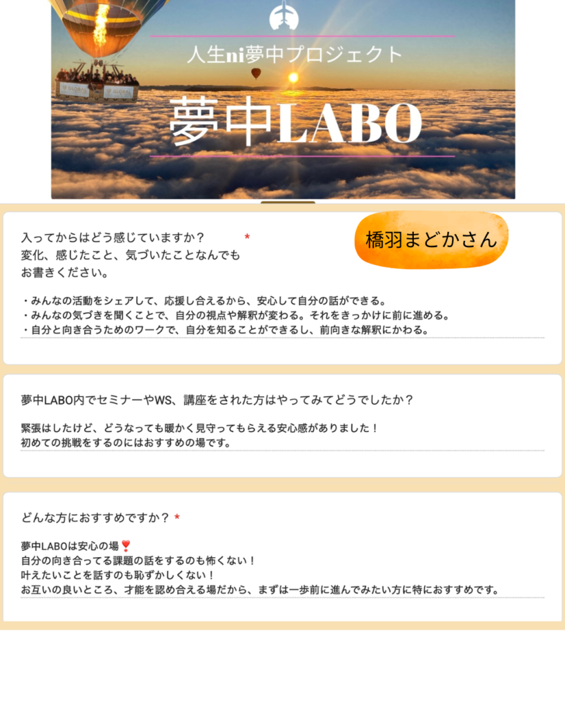 夢中LABOに参加してくださる方もとても多いです。